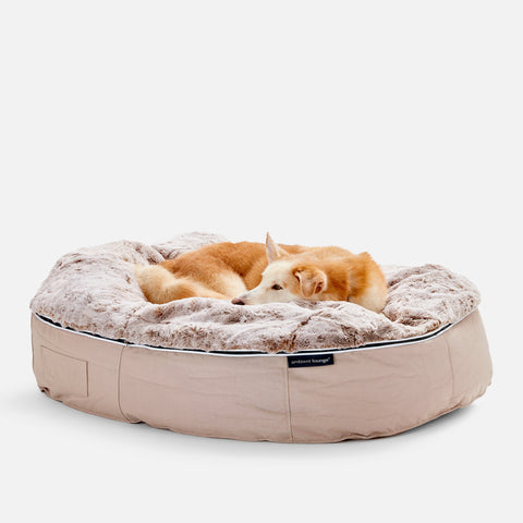 There is simply no more luxurious dog bed on the market than the Cappuccino Faux fur Indoor/Outdoor bed by ambient lounge. Made from super thick & heavenly soft premium, washable, frosted faux fur top sheet- this bed will make humans jealous. Tactile like your dog's own coat watch them sink and fall in love with a bed that will last for most of their life.