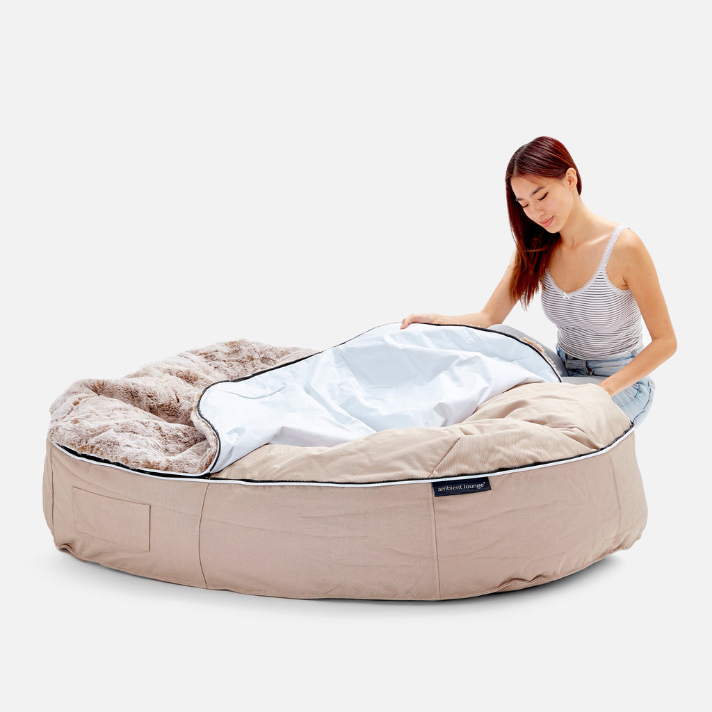 Besonders große Hunde verdienen extra viel Liebe und ein XXL-Hundebett. Es ist gar nicht so einfach, ein passendes Hundebett für eine Deutsche Dogge oder einen Bernhardiner zu finden. Ambient Lounge® hat ein Hundebett entwickelt, das unseren Riesen höchsten Komfort bietet: ein XXL-Hundebett mit wasserdichter und bissfester Unterseite, austauschbaren Bezügen und einer intelligenten Belüftung, die für optimale Luftzirkulation sorgt und das Hundebett auch an heißen Tagen angenehm kühl hält.