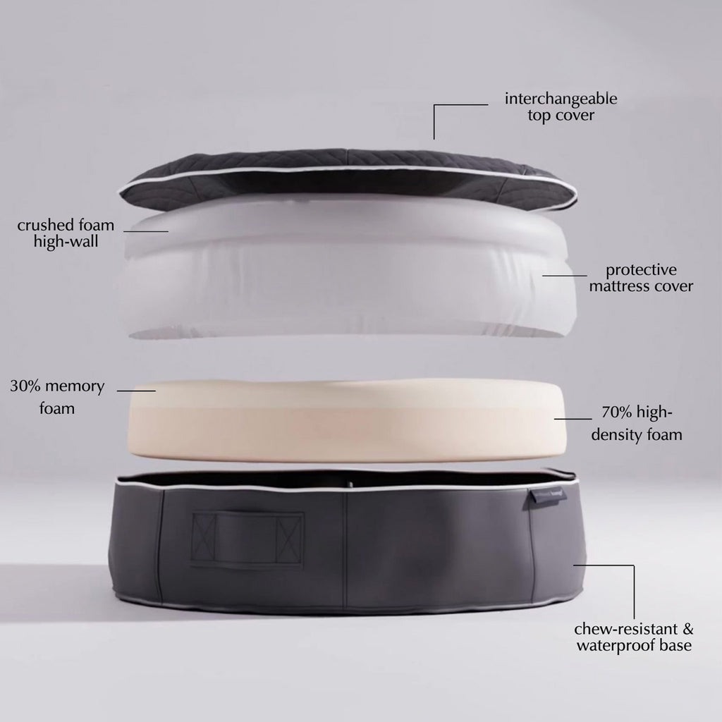 Regala al tuo cane il lusso che merita con il materasso per cani XXL Rebound Foam di Ambient Lounge. Progettato per offrire il massimo supporto e relax , questo letto interamente in schiuma è composto per il 70% da schiuma ortopedica ad alta densità e per il 30% da memory foam , garantendo un sollievo dalla pressione e un supporto articolare superiori, perfetti per cani di tutte le età, in particolare per i cani anziani o le razze predisposte a problemi alle anche e alle articolazioni.